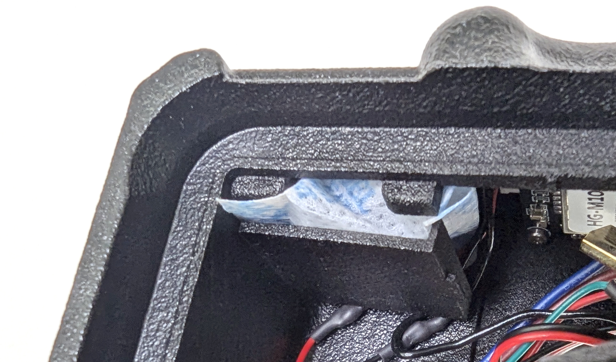To install the (optional) desiccant packet pull the shelf down and push the packet into the cavity. You can route the GNSS (GPS) wires under the back of the shelf to help get them out of the way.
